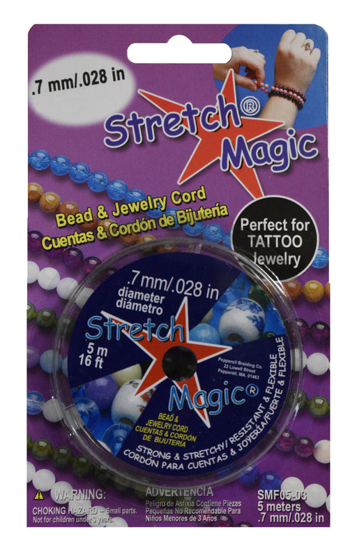 Pony bead and other jewelry cord that is durable, flexible, and stretches. Latex-free and made of high-tech polymer. Easily ties off.